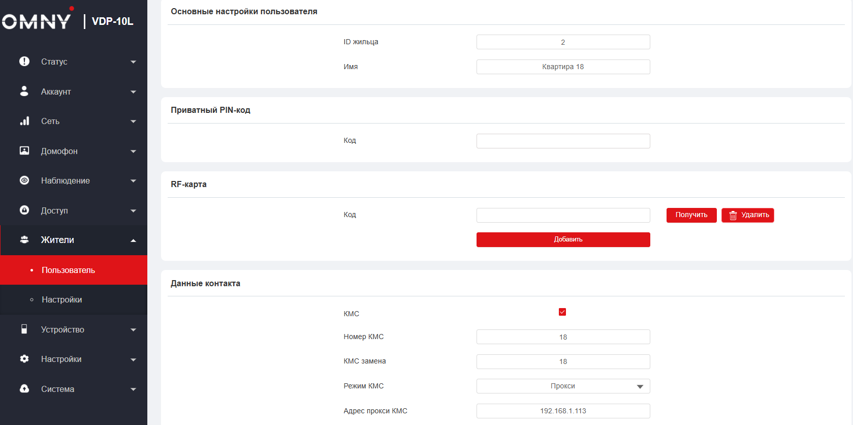 Адрес прокси КМС — указываем IP-адрес вызывной панели, к которой подключен коммутатор.