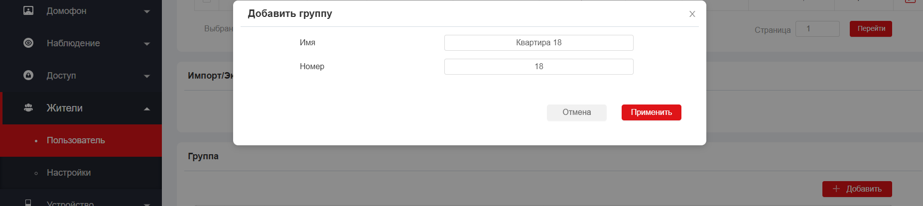 Создаем группу и указываем номер квартиры для дозвона с вызывной панели