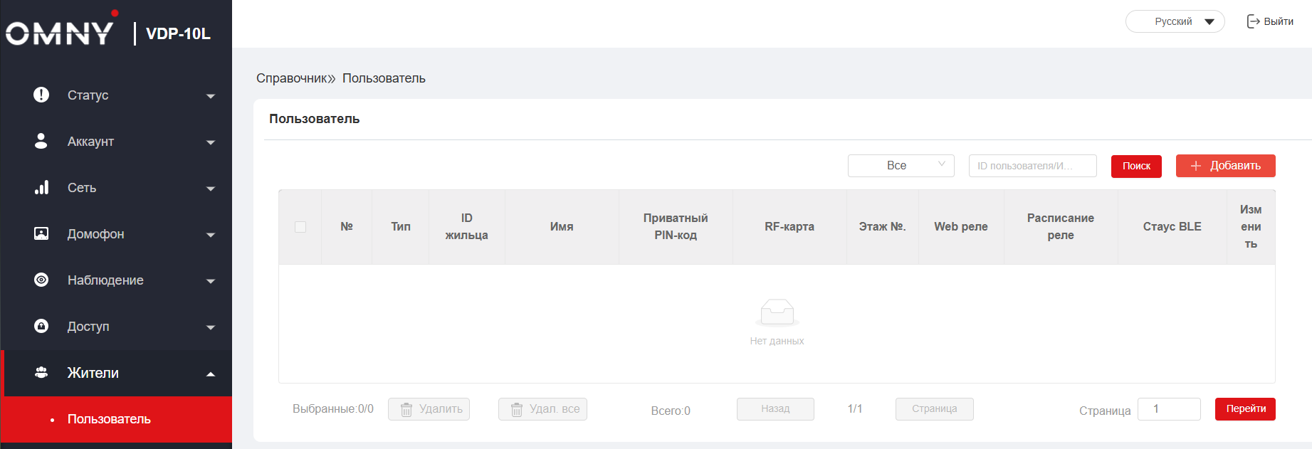 Для добавления пользователя перейдите в раздел Жители > Пользователь > Добавить.