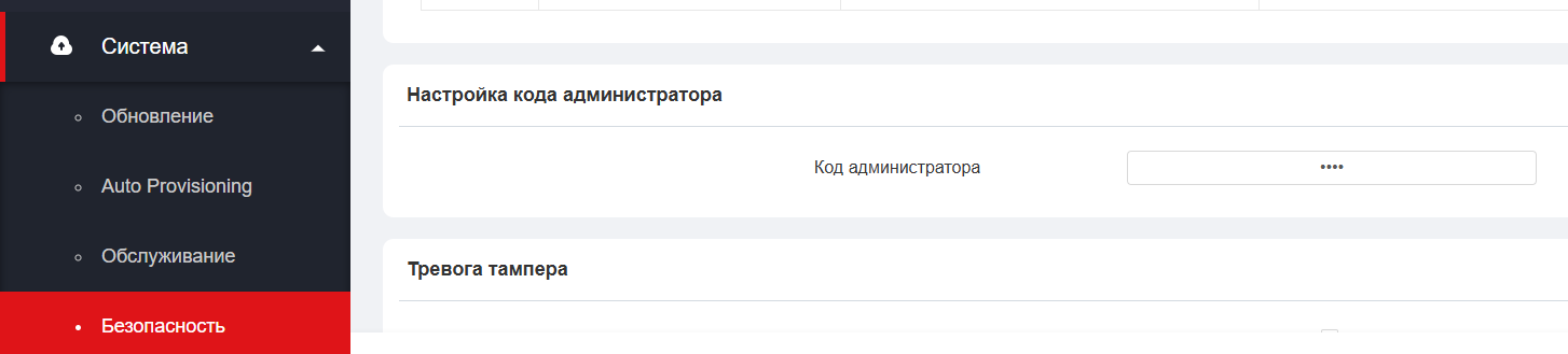 перейдите в раздел Система > Безопасность, введите новый код, сохраните настройки.
