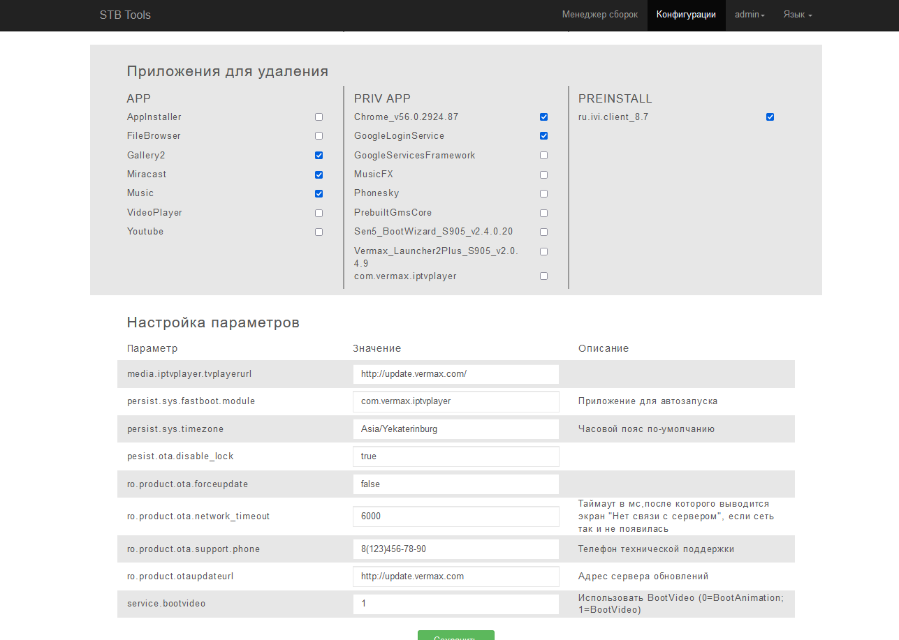 Сервис STB Tools предоставляет возможности по модификации прошивки: