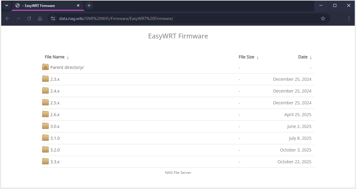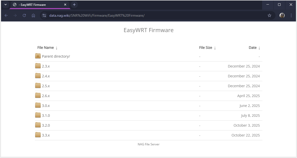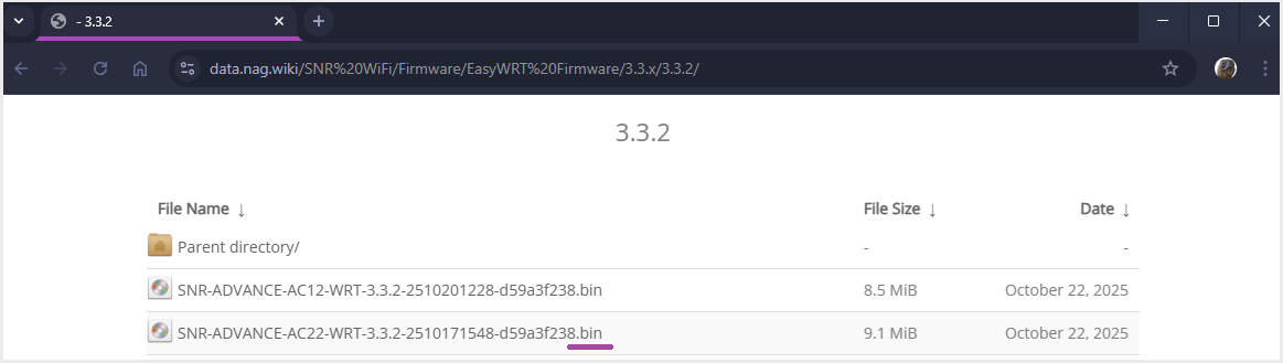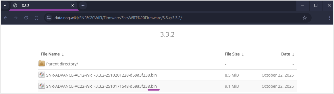 Перейдите на файловый ресурс вашей модели роутера SNR или B-OptiX и загрузите на ваше устройство файл .bin актуальной версии прошивки из каталога версий.