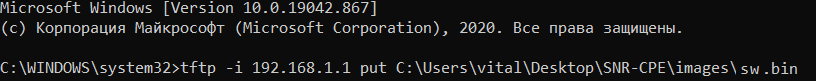 tftp -i 192.168.1.1 put <путь до файла прошивки .bin>