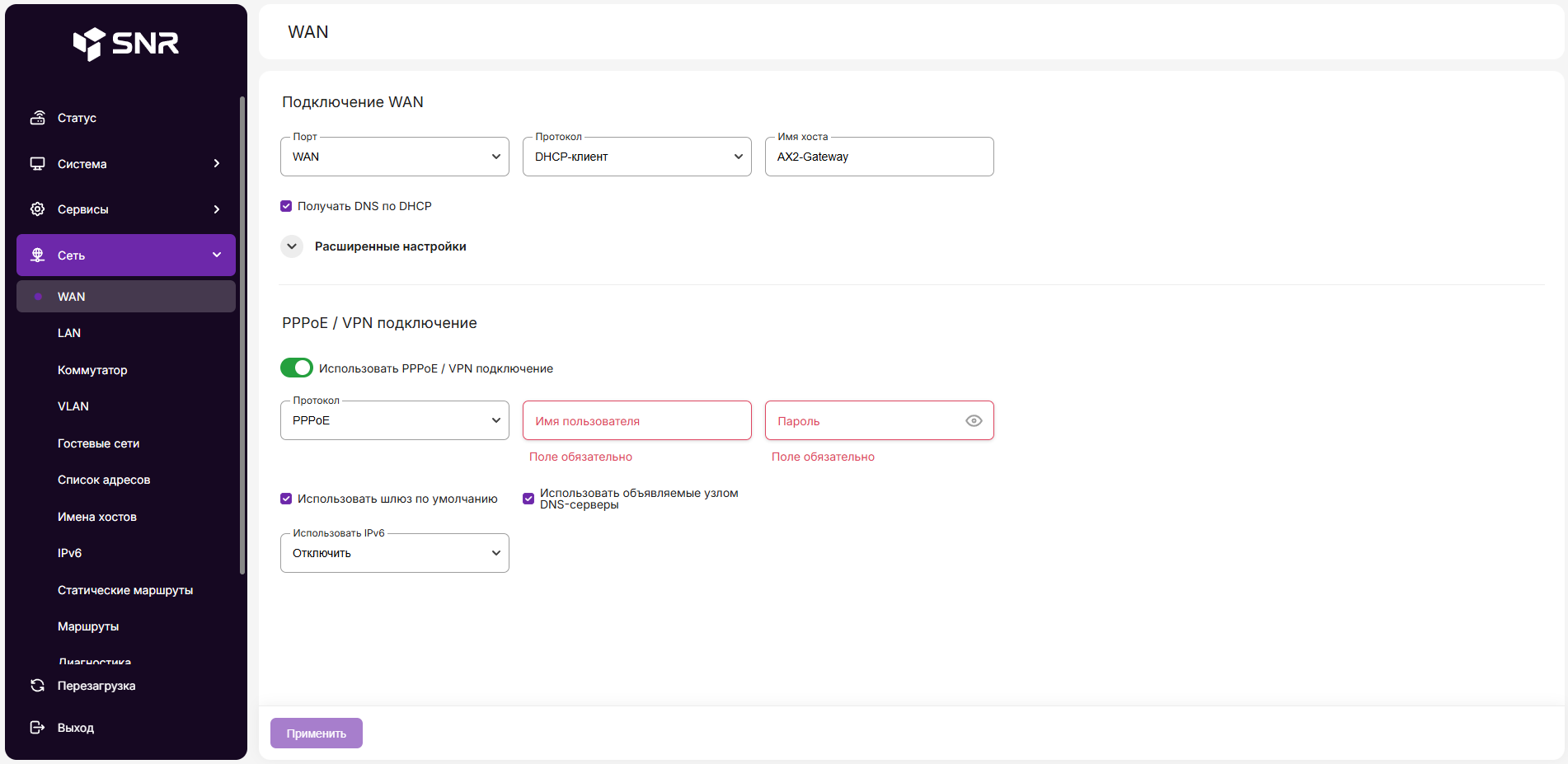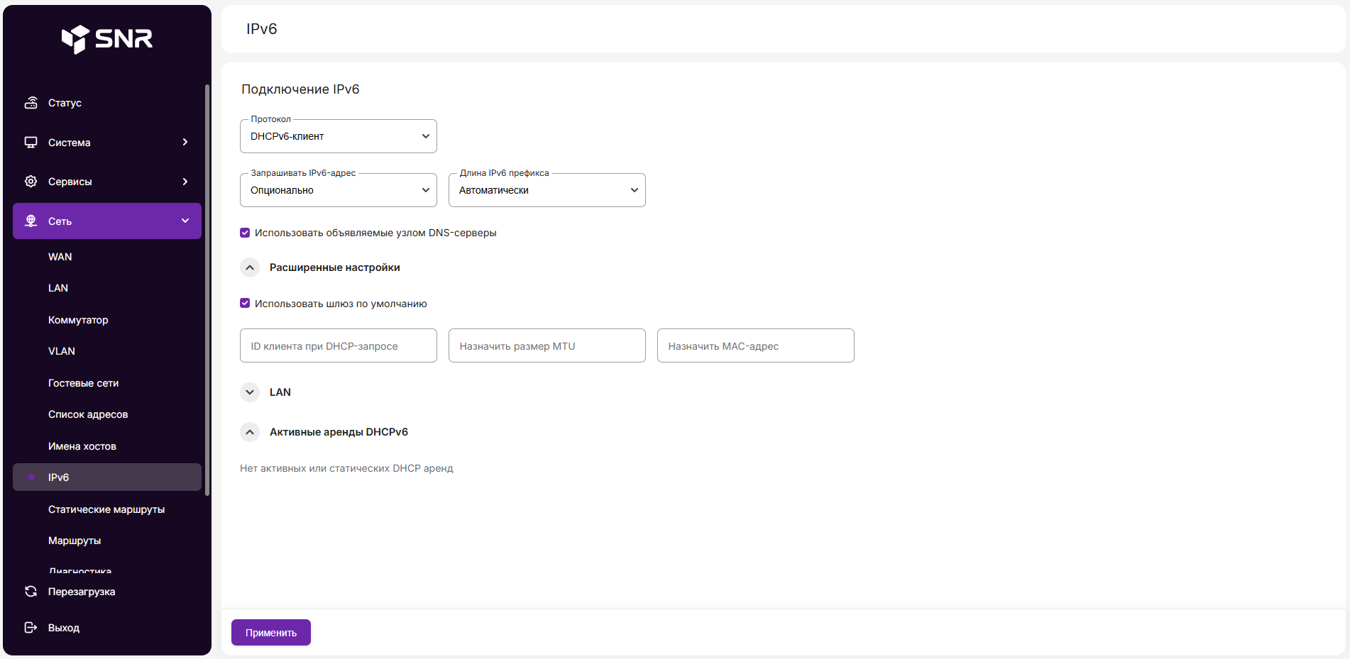 Настройка WAN - IPv6