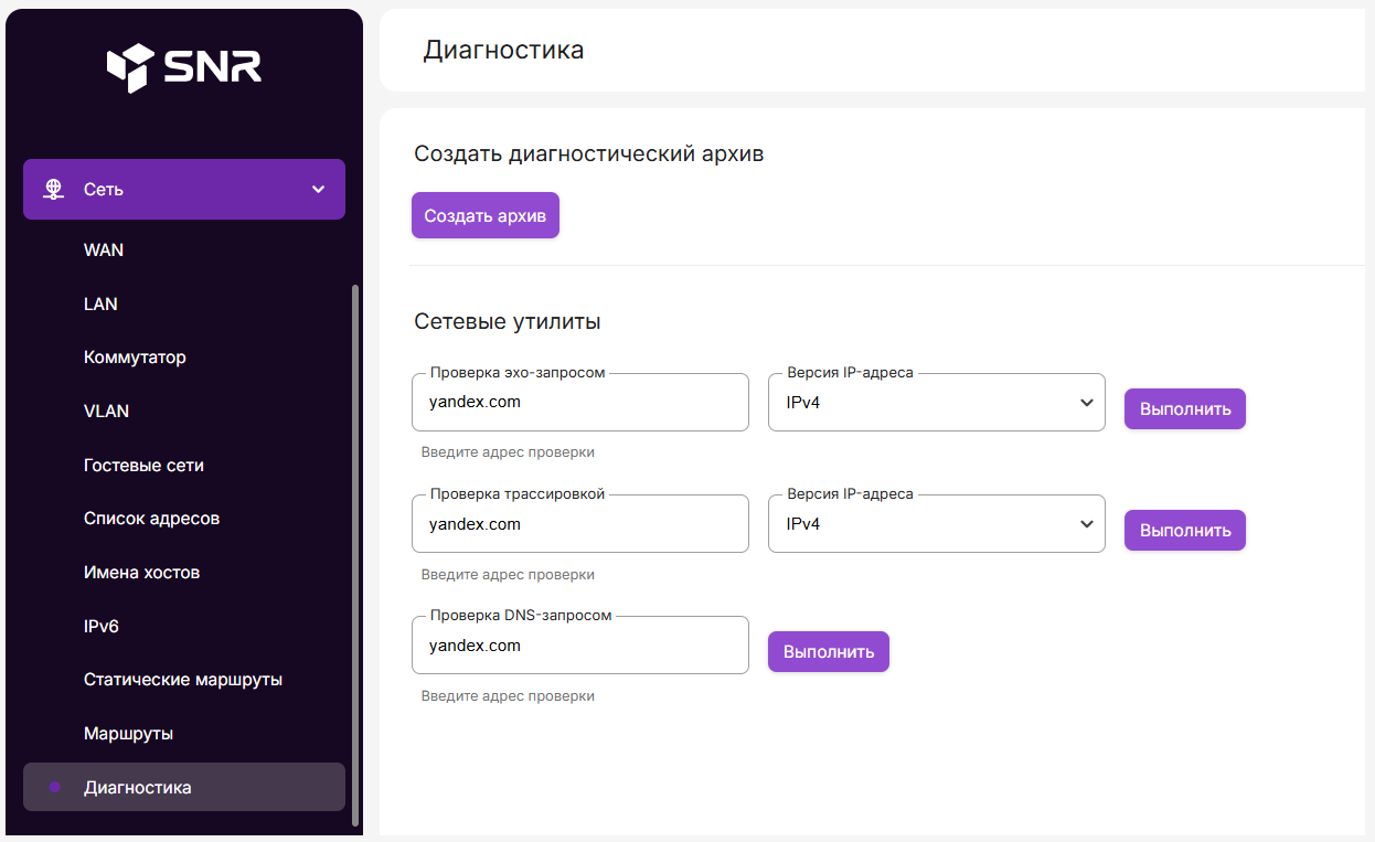 Встроенные утилиты позволяют выполнять базовую диагностику сетевых подключений напрямую с роутера. Это помогает быстро определить наличие доступа к сети, корректность маршрутов и работу DNS-серверов.