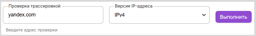 2. В разделе "Сетевые утилиты", в пункте "Проверка трассировкой" укажите доменное имя или IP-адрес проверяемого ресурса.