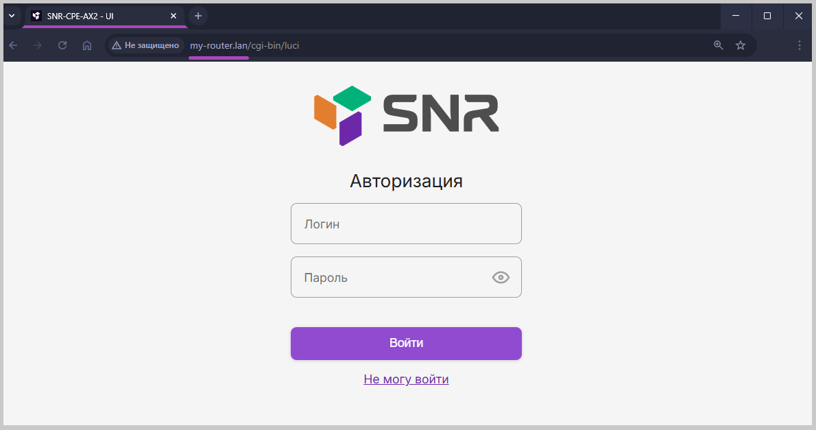 Пример созданной и функционирующей записи my-router.lan для LAN IP-адреса 192.168.1.1 роутера SNR: