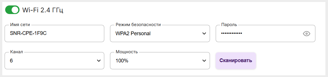 Здесь можно включить или отключить Wi-Fi, изменить имя сети, установить пароль и задать уровень сигнала.