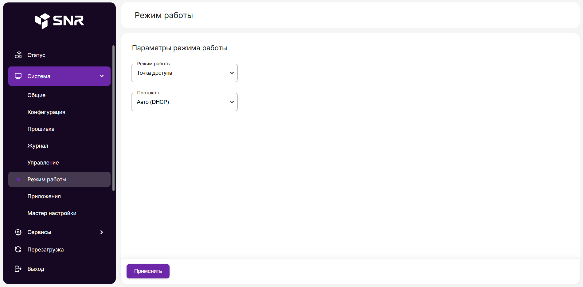 • В роутерах SNR ADVANCE и B-OptiX выберите "Точка доступа".