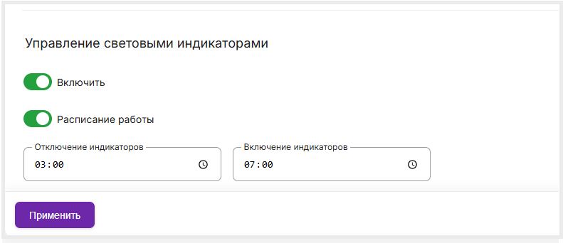 3. Для настройки режима работы индикаторов, включите тумблер "Расписание работы".