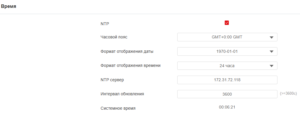 - NTP сервер: IP адрес NTP сервера.