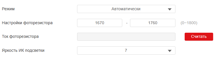 - Настройки фоторезистора: установите минимальное и максимальное значение фоторезистора на основе текущего фактического значения, которое можно получить кнопкой «Считать», чтобы обеспечить автоматическое управление. Минимальное и максимальное значения фоторезистора по умолчанию находятся в диапазоне от «0» минимум до «1800» максимум соответственно.